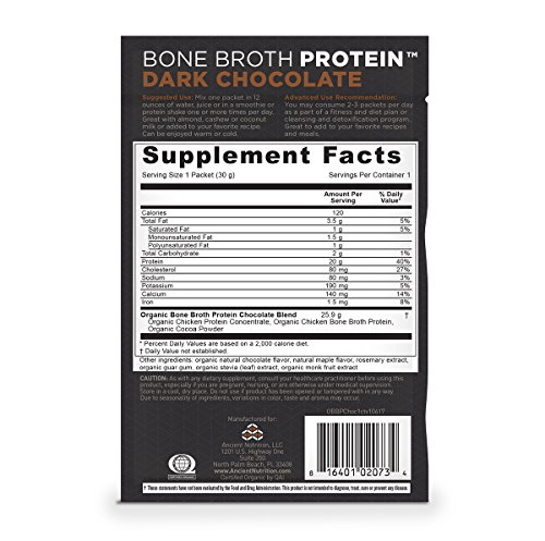 -. Binding : Health and Beauty -. Brand : Ancient Nutrition -. IsAdultProduct : 0 -. Label : Ancient Nutrition -. Manufacturer : Ancient Nutrition -. ProductGroup : Health and Beauty -. ProductTypeName : HEALTH_PERSONAL_CARE -. Publisher : Ancient Nutrition -. Studio : Ancient Nutrition -. Title : Bone Broth Protein Organic