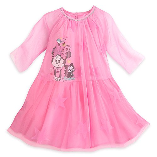 Minnie mouse is sweet and cute, and now she's fancy too, on this perfectly pink dress. As she shares a smile with her kitten Figaro, your little darling will delight in the elegant top layer of mesh that gives the whole look a dreamy feel.Feature