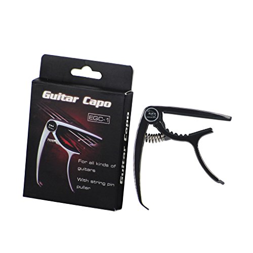 Product Description Feature:* The capo has a great performance for all kind of guitar,can clamp firmly onto most fretboards without buzz or loss of tuning.* With smooth surface and ergonomic handle,it is made of zinc alloy, lightweight but durable.* Strong spring is made of stainless steel,with great acid resistance,will help hold all of the strings down.* Soft silicone padding helps to protect the strings and fretboard without compromising on the quality of pitch and tone.* Easy to use,quickly and easily released and repositioned without disturbing the tuning.Can be repositioned with just one hand.* There is a string pin puller at the end of the handle, which can help you to remove string pins without making damage to your guitar.Specification:Fits for all kind of electric, acoustic and classical guitarMaterial: Handle is made of high quality zinc alloy, with soft silicone padding to protect your guitar perfectly.Color: BlackPackage include:1 x Packaged Guitar Capo 0