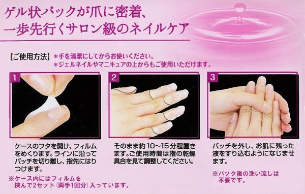 | ゲル状パックが爪に密着、一歩先行くサロン級のネイルケア。 |