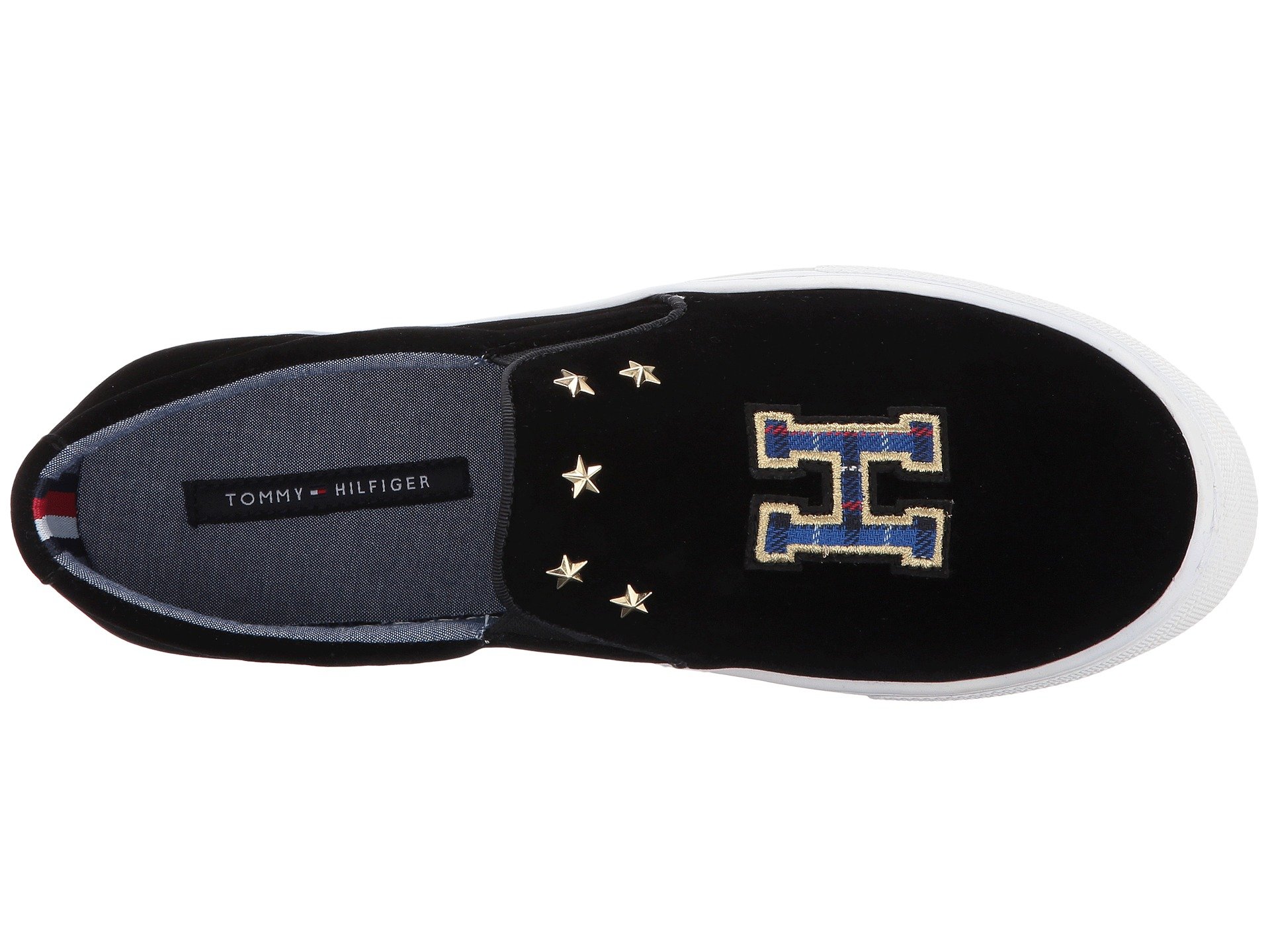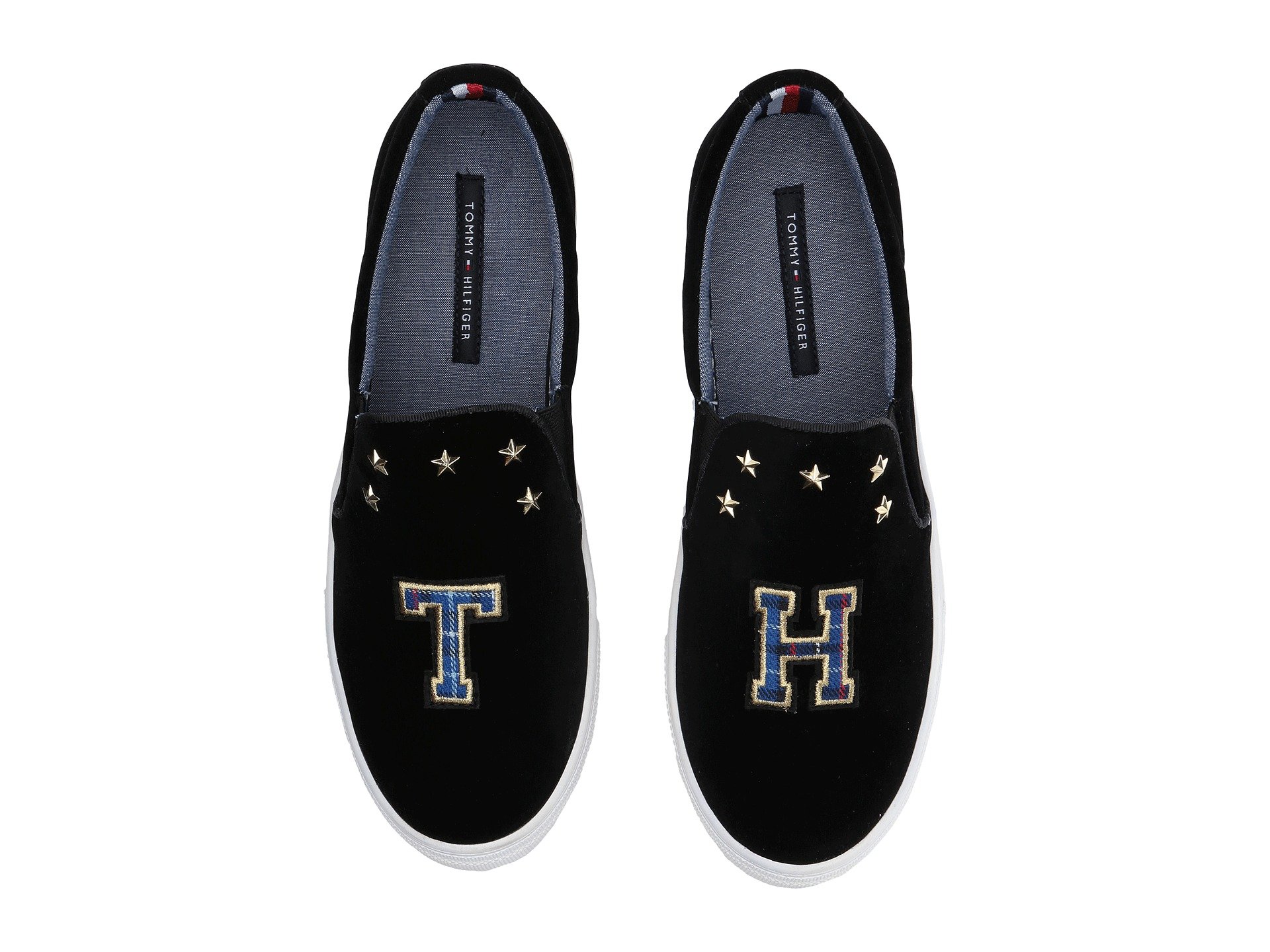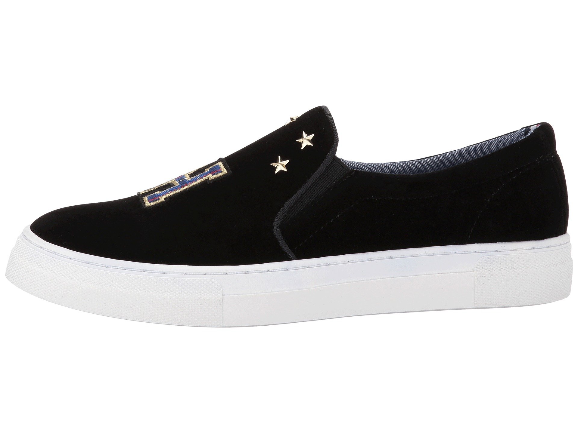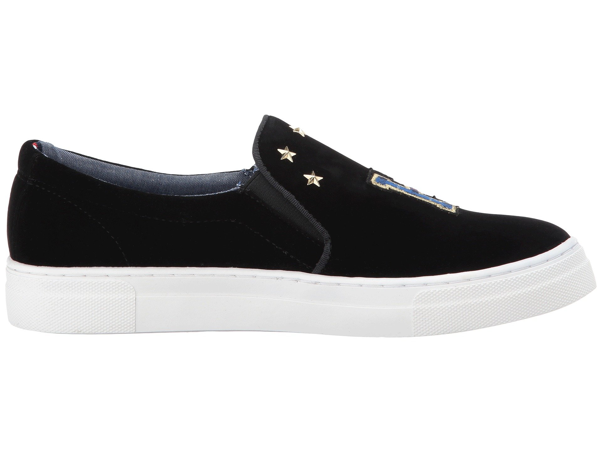 | Product Information SKU: #8929989Put some prep in your step with the Tommy Hilfiger™ Soda sneaker. Plush velvet upper.Slip-on design with inset goring.Round-toe silhouette.Star studded detailing with 'T' and 'H' patches.Textile lining and insole.Lightly-padded footbed. Textured rubber outsole.Imported. Product measurements were taken using size 8.5, width M. Please note that measurements may vary by size.Weight of footwear is based on a single item, not a pair.Measurements: Weight: 10 oz |