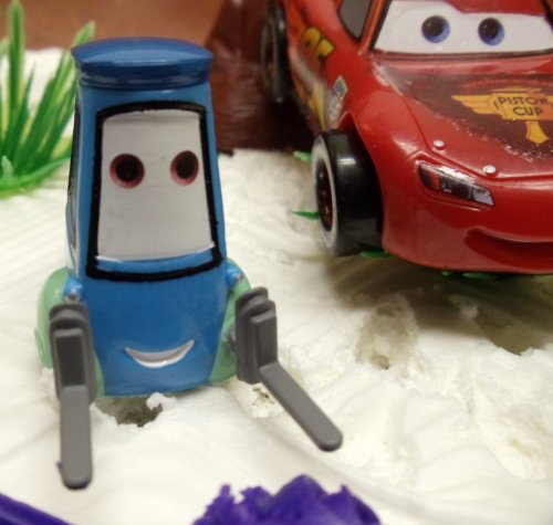 Cars 14 Piece Birthday Cake Topper Set Featuring Tow Mater, Sarge, Lightning McQueen, Fillmore, Luigi, Guido with Decorative Themed Accessories - Cake Topper Set Includes All Items Shown