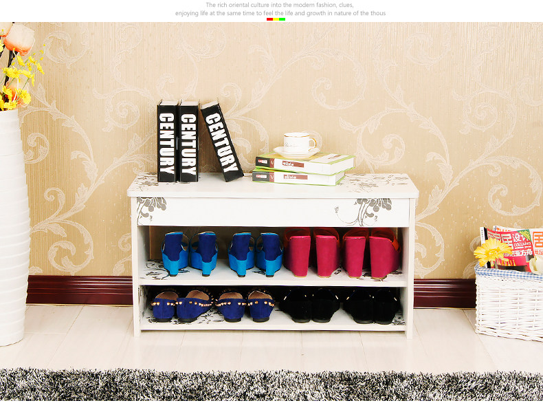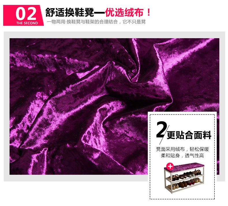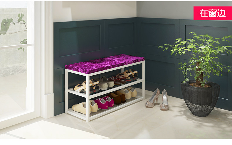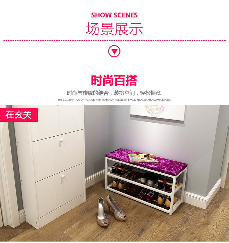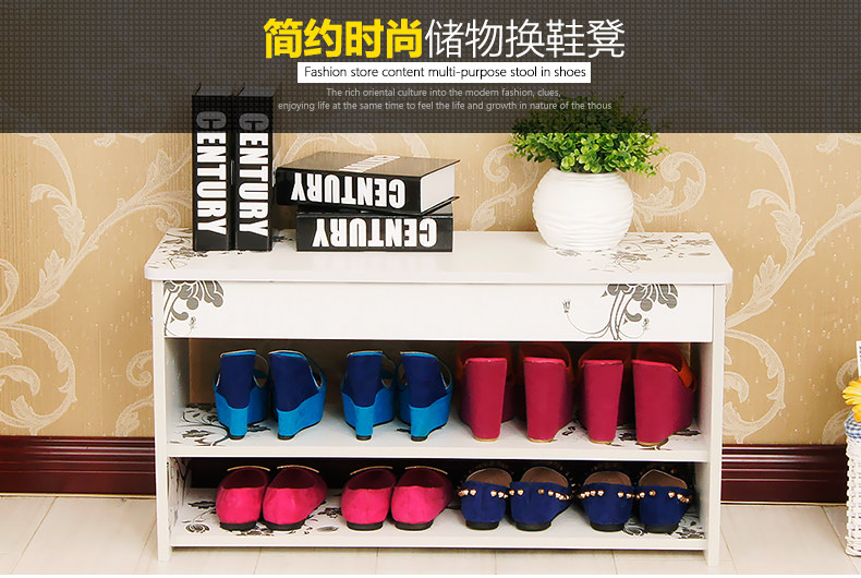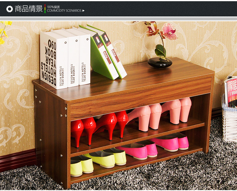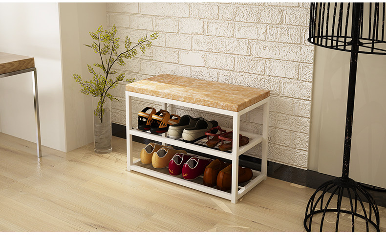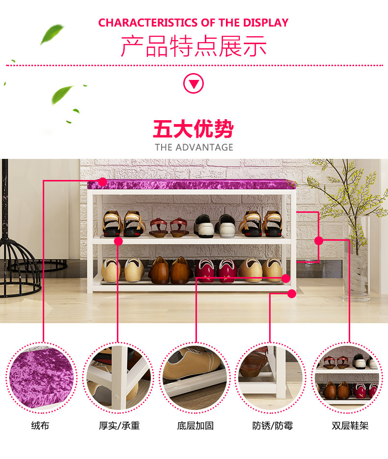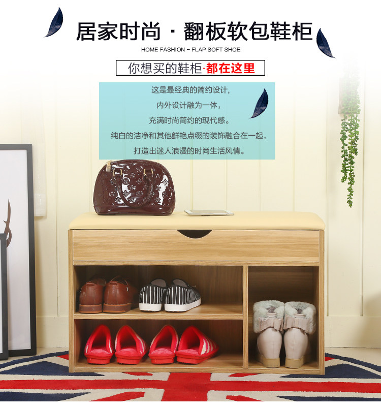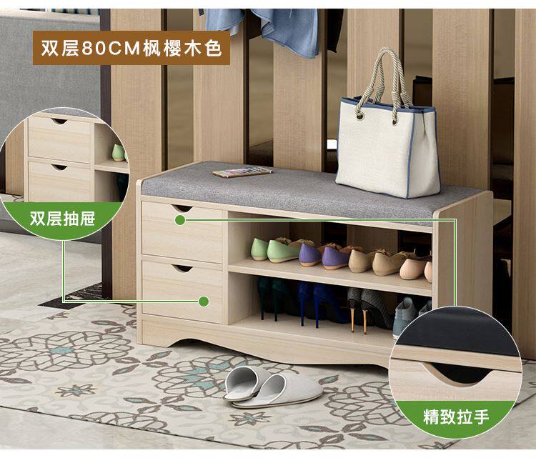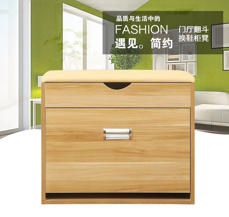 特点:鞋柜与坐凳完美结合, 鞋子收纳井井有条, 也省却了换鞋时" 金鸡独立”的尴尬与麻烦。鞋柜内三层空间, 轻松收纳全家人的鞋子与拖鞋。中间的两块隔板能够自由取出, 空间变大, 较高的鞋子和短靴都能放置进去,大大提升了实用性能。