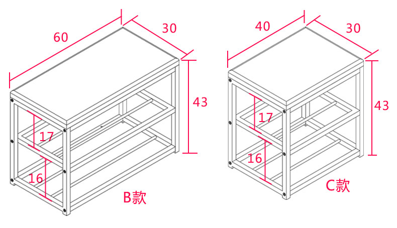 Size: L:A:L80*W30*H43(cm) /M:B:L60*W30*H43(cm) /S:C:L40*W30*H42(cm)
