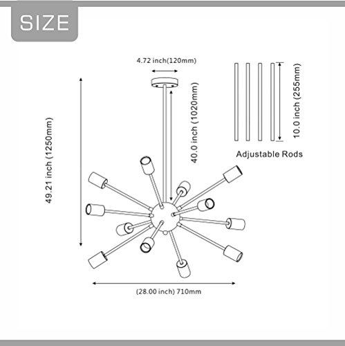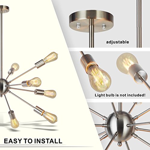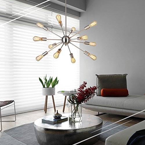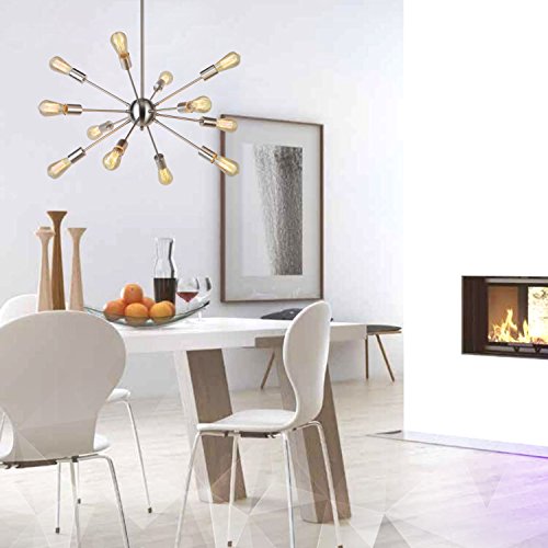 Handmade Sputnik Chandelier Brushed Nickel 12 Light Pendant Lighting Retro Ceiling Light Fixture UL Listed .An ideal piece which combines perfect the Mid century modern style with the minimal aesthetic! It can decorate and brighten the Kitchen, the dining room, the foyer or any other place of your home,it will make you feel more relax and enjoy.