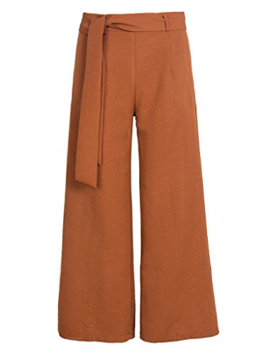 -. Title : PERSUN Women's Brown Tie Waist Wide Leg Cropped Palazzo Pants