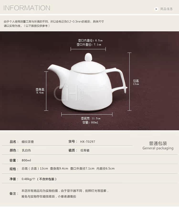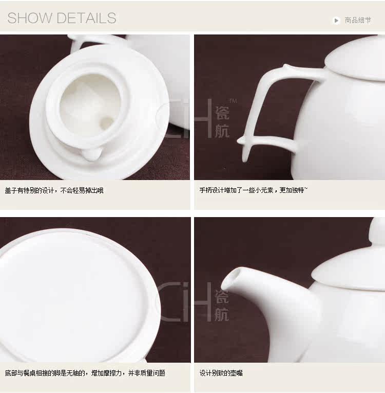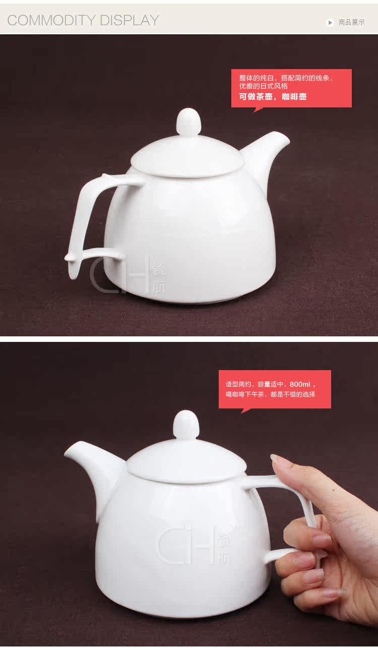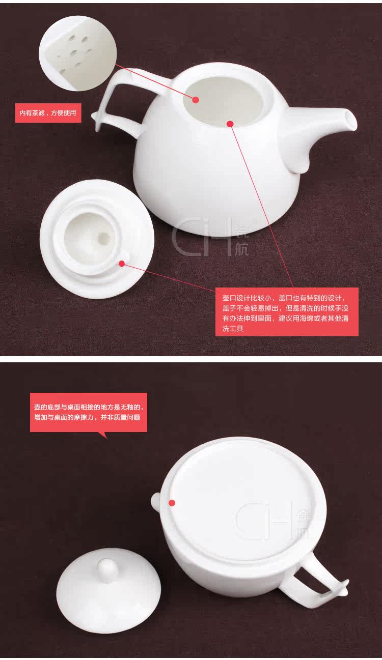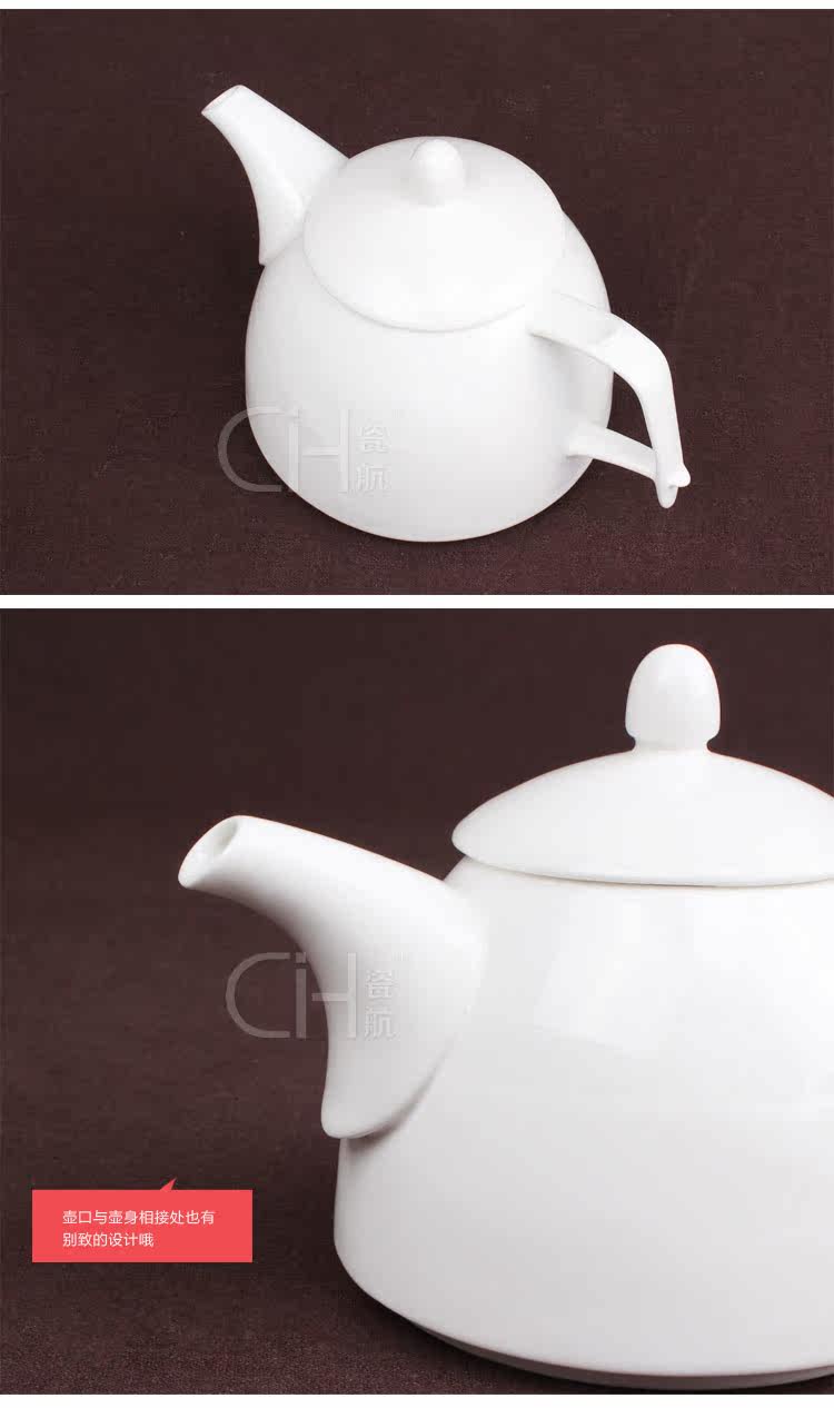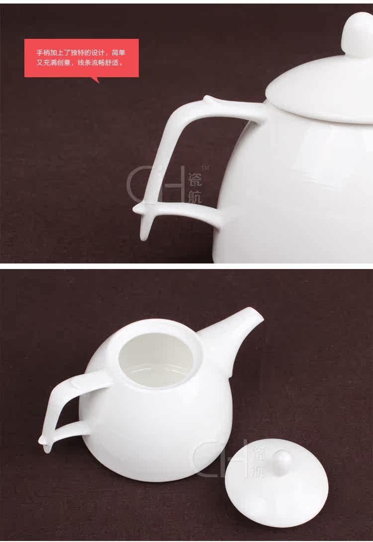 瓷航细纹茶壶陶瓷单壶咖啡壶纯白日式骨瓷大容量茶壶咖啡壶800ml