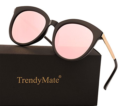 TrendyMate Women Round Frame Oversized Sunglasses Men UV400 Retro Cute Sun Glasses