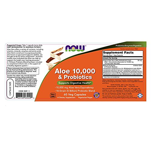 ReleaseDate : 2015-10-15 Studio : NOW Foods- Nutrition and Wellness Publisher : NOW Foods- Nutrition and Wellness Binding : Health and Beauty Product Description Now foods aloe vera 10,000 probiotics offers a variety of nutrients, including vitamins, minerals, enzymes and amino acids. 0