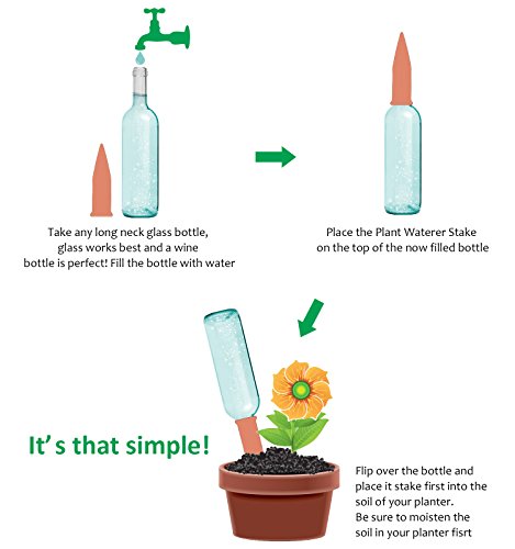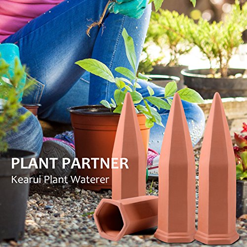 Plant Watering Spikes, Kearui Set of 4 Terracotta Self Watering Stakes Automatic Plant Watering Devices System for Indoor Outdoor Vocation Plant Watering