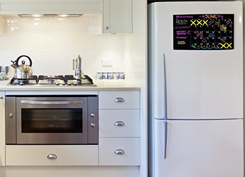 Use with Chalk, Chalk Markers, and Neon Dry Erase This calendar is designed for use with standard chalk sticks, chalk markers, and colored chalk sticks. Please test a small portion of the Chalkboard Decal before writing.
