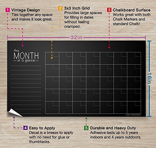 Ties together any space Our Chalkboard Calendar was designed to be not just practical, but to look great.. From kitchens, to home offices, and to dorm rooms, classrooms, conference rooms and beyond, this calendar will tie together the decor of any room. This is the perfect DIY accent piece that is sure to have people complementing your sense of design.