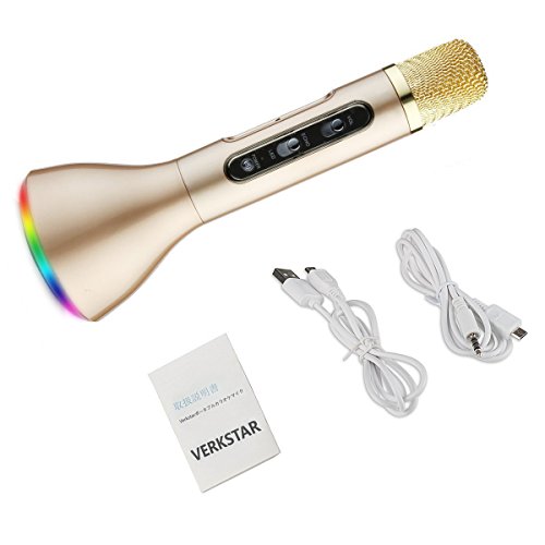 Verkstar 포터블 마이크 3-in-1 블루투스 Bluetooth 매직 카라오케 머신 무선 마이크 소형 스피커 iPhone/Android,PC대응 일본어 취급 설명서 첨부 와