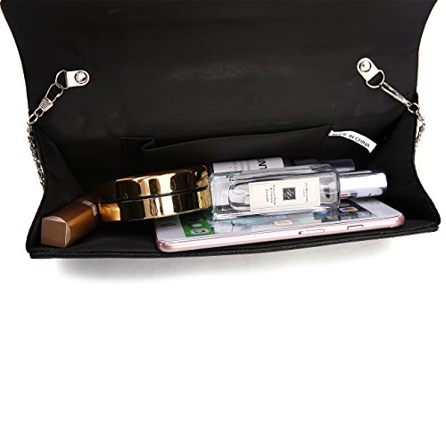 -. Feature : Dimensions:: 9.0" x 2.50" x 5.52"(L x W x H). / Decorated with shinny sequins and silk material bottom with one small pocket. / Plenty of room for your credit card, cellphone, ID, lipstick, and other small essentials. / Bling Shiny Rhinestone surface,unique design different from the other evening bags.The bag can be clutched by hands or hung on shoulders with the durable chain. / Suitable for wedding, party, prom, banquet or important formal occasions.