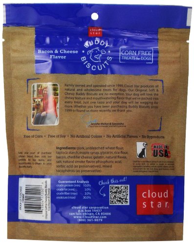 -. Title : Cloud Star, Soft & Chewy Buddy Biscuits Dog Treats, Bacon and Cheese Flavor, 6-Ounce Pouches (Pack of 4)