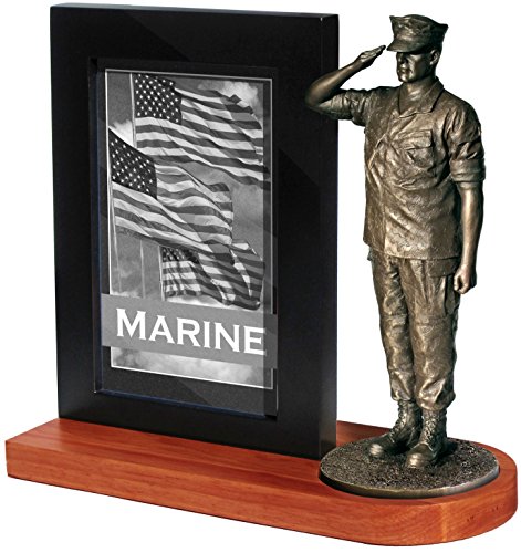 -. Title : Khaki Army MD101W US Marine Saluting on Wood Base with 4x6 Photo Frame