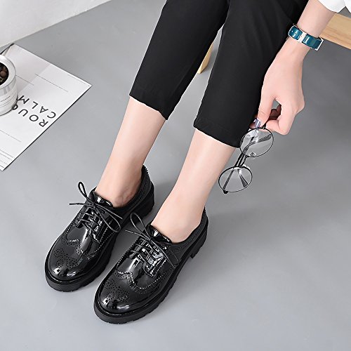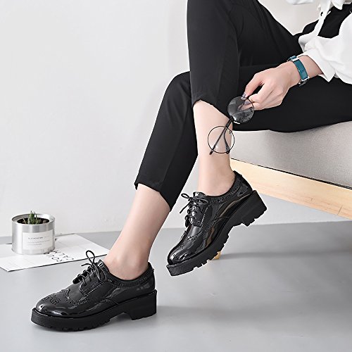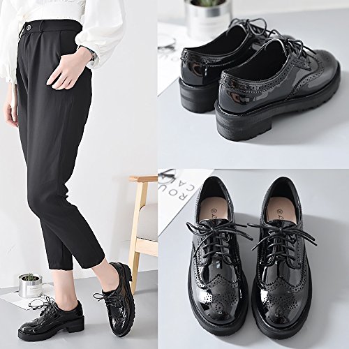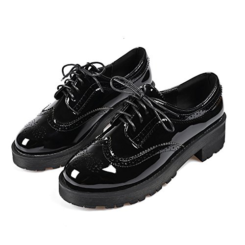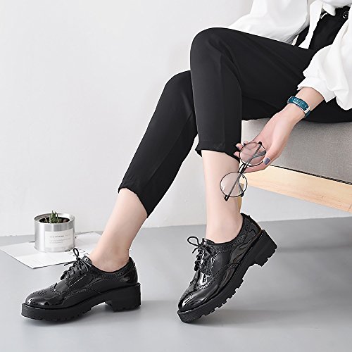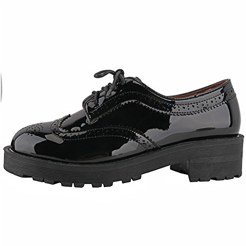 Binding : Apparel Product Description Item Type:Oxford Heel Height: 1.96"(5CM) Platform:0.98"(2.5CM) Width: Medium (B,M) Width: Regular Upper:PU Material Closure Type: Lace Up Sole:TPR,Cushioned footbed for long time wear Featrue:Brogue Vintage Wingtip Lace UP Style: Leisure,formal,uniform