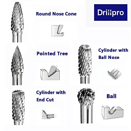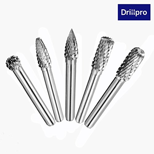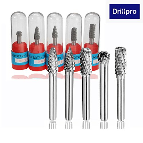 Drillpro 5Pcs 8MM Head Tungsten Carbide Rotary Point Burrs Die Grinder 6mm Shank Cutter