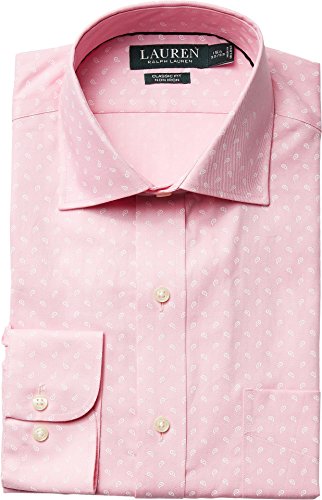 LAUREN Ralph Lauren Men's Classic Fit Non Iron Poplin Mini Paisley Print Spread Collar Dress Shirt Pink Button-up Shirt