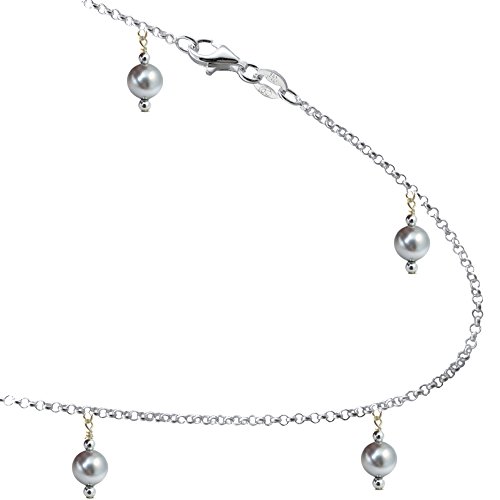 -. Title : Simulated Grey Colored Pearls with .925 Sterling Silver Link Anklet, Bracelet. 7,8,9,10,11,12,13 Inches