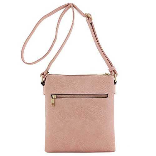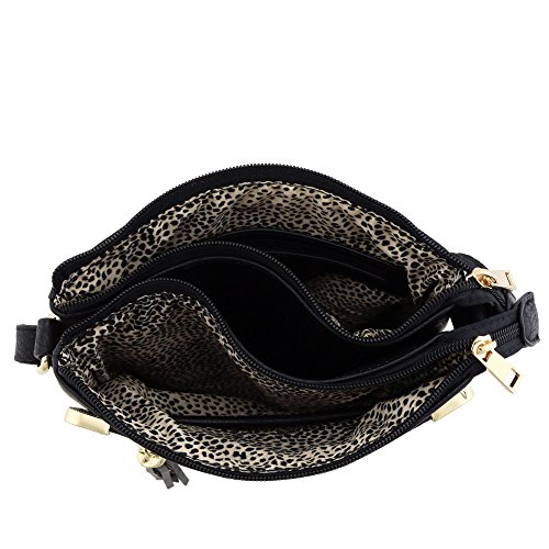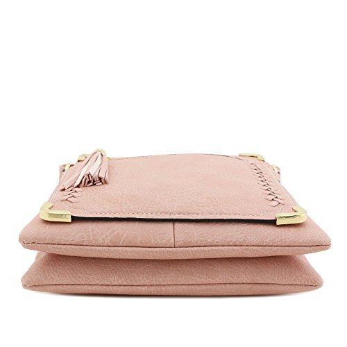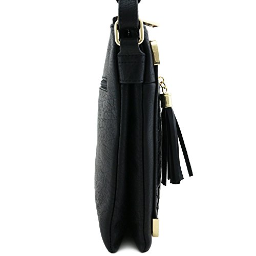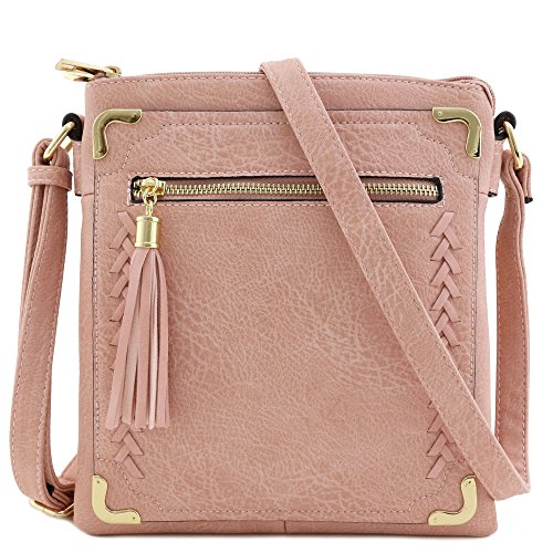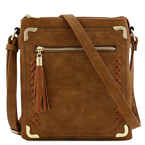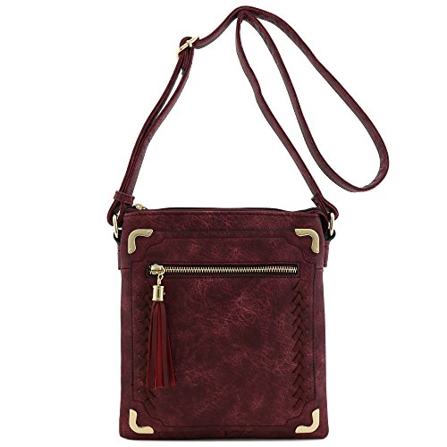 -. Title : Double Compartment Whipstitched Crossbody Bag with Tassel Zipper Accent