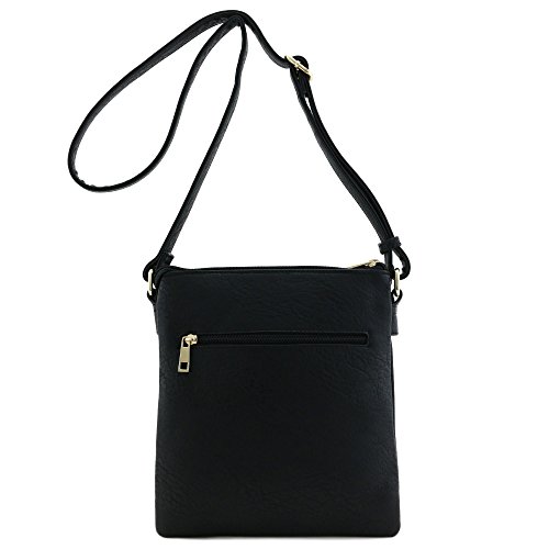 -. Feature : 9" (W) x 10" (H) x 2" (D) / Zipper closure / Adjustable shoulder strap with 25" drop / Faux leather & gold tone hardware / 1 zipper pocket & 1 slip pocket inside