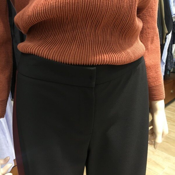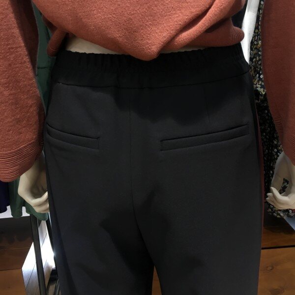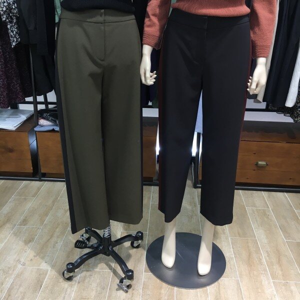 롱한 레그라인을 연출해드리는 데일리팬츠 소개할께요! 앞은 슬랙스형태로 뒷쪽은 밴딩으로 활동성과 착용감이 편안하도록 디자인 한 제품입니다 ^^ 후크와 지퍼 디테일로 안정감있는 클로징을 도와드리며 살짝 통바지 핏감으로 떨어져 멋스러웠어요. 옆태에 포인트 색감 배색을 넣어 베이직한 팬츠이지만 분위기 있는 색감이 들어감으로써 유니크한 느낌을 주고 밋밋함을 덜어드려용~ 발목을 드러내는 느낌으로 연출하기 좋아요. 총장길이는 55사이즈 기준으로 90.5cm 입니다.