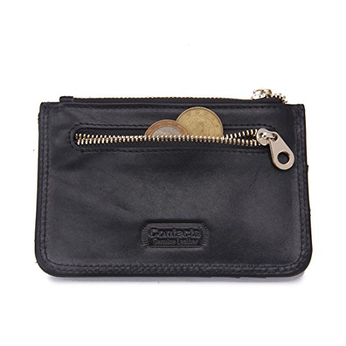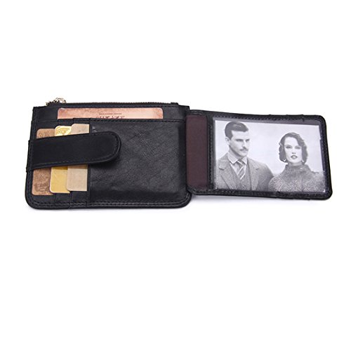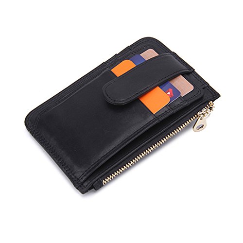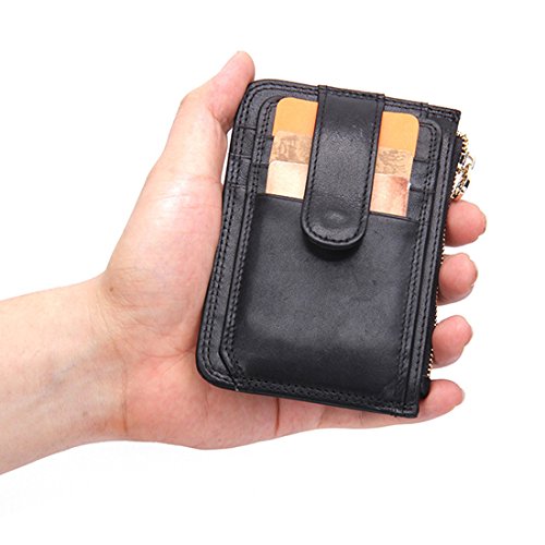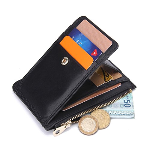 YYF Leather RFID Blocking Slim Mini Wallet Card Case Wallet with Zipper Pocket for Men and Women