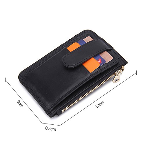 Feature: Leather/High quality metal zipper/Thick stitching/13*0.5*9 cm. Only 4mm thick Perfect for people who don't like go out with a bulky traditional wallets,Feel is exquisite,modelling concise,durable card case,and solid crafting wallet,that makes the card holder worth it.Slim figure makes the business card holder easy to slide into your front pocket