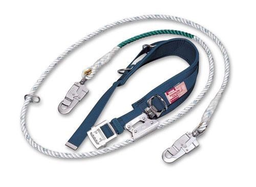 | 主ランヤードの両端にフックを備えており、作業中のロープ掛け替え時にいずれかのフックが構造物と連結されている使用方法により、無胴綱状態が発生せず作業ができます。バックル・フックなどの金具類にはアルミ合金を多く使用して軽量化を図っております。 |
