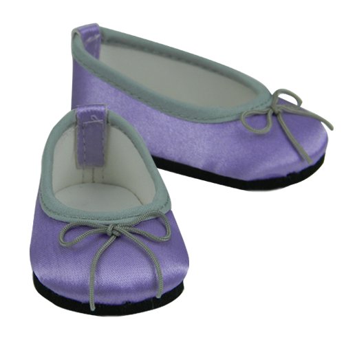 - 1 Pair of Satin Ballet Flats in Lavender with Silver Trim & Bow fits American Girl Dolls, Madame Alexander, Sophia's Dolls & More!
