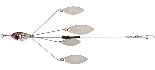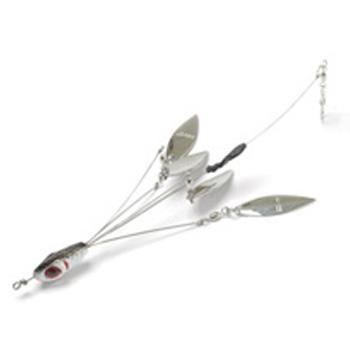 The Booyah Boo Rig utilizes the effectiveness of a schooling rig and a spinnerbait ? all in one fish-catching package. Equipped with four lustrous willow blades at the end of four stiff wire arms, the Booyah Boo Rig gets down deep and delivers a blinged-out presentation that big bass just can’t resist. When fished with a wide-wobbling crankbait, the vibrations travel up through the wire, and give the willow blades even more action. Fish the rig that’s full of flash, the Booyah Boo Rig. The Boo Rig series from Booyah provides lures with the added weight necessary to go beyond their targeted running depth, and keeps them in the strike zone as long as possible. What’s more, the Boo Rig series uses a flexible nylon-encased wire that allows lures to swim like they’re attached straight to mono. And not they're not meant just for fishing swimbaits either, all of the Booyah Boo Rigs can accommodate all manner of crankbaits, spoons, weightless swimbaits, and even jerkbaits.