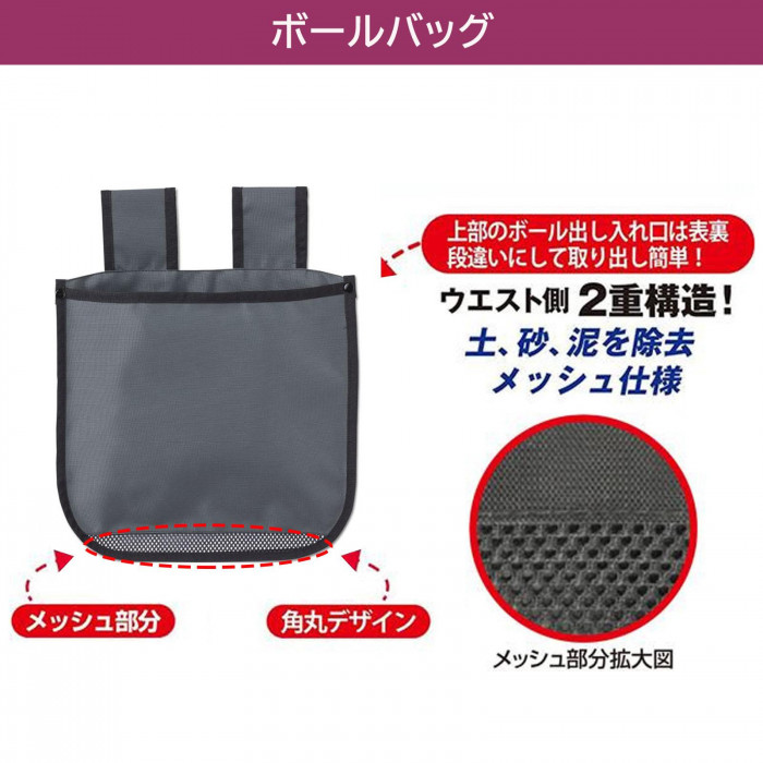 | 素材・材質 | ボールバッグ:オックスフォード織りナイロン生地 球審用ブラシ:プラスチック、プロピレン インジケーター:プラスチック クリーナーブラシ:プロピレン 収納ポーチ:ポリエステル |