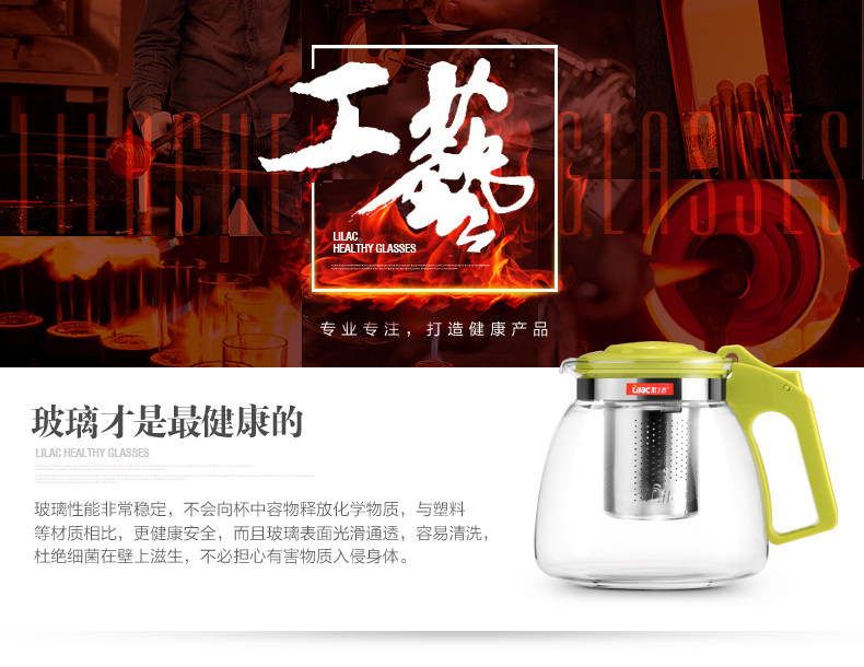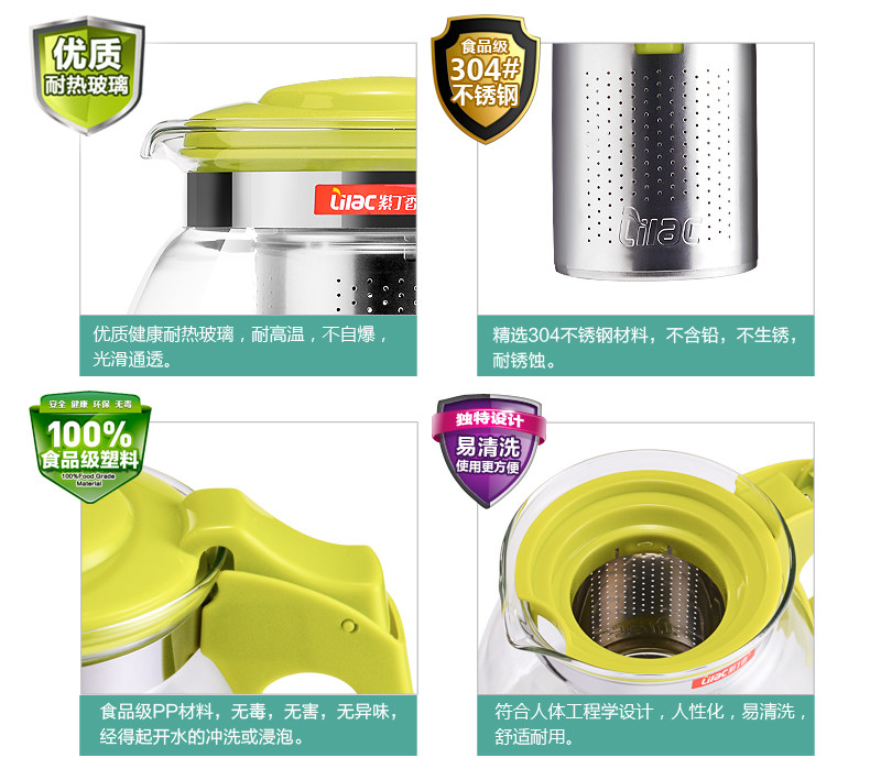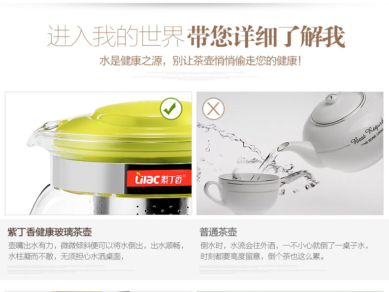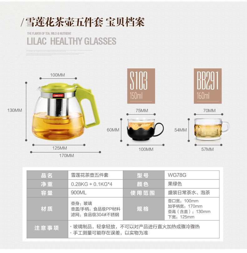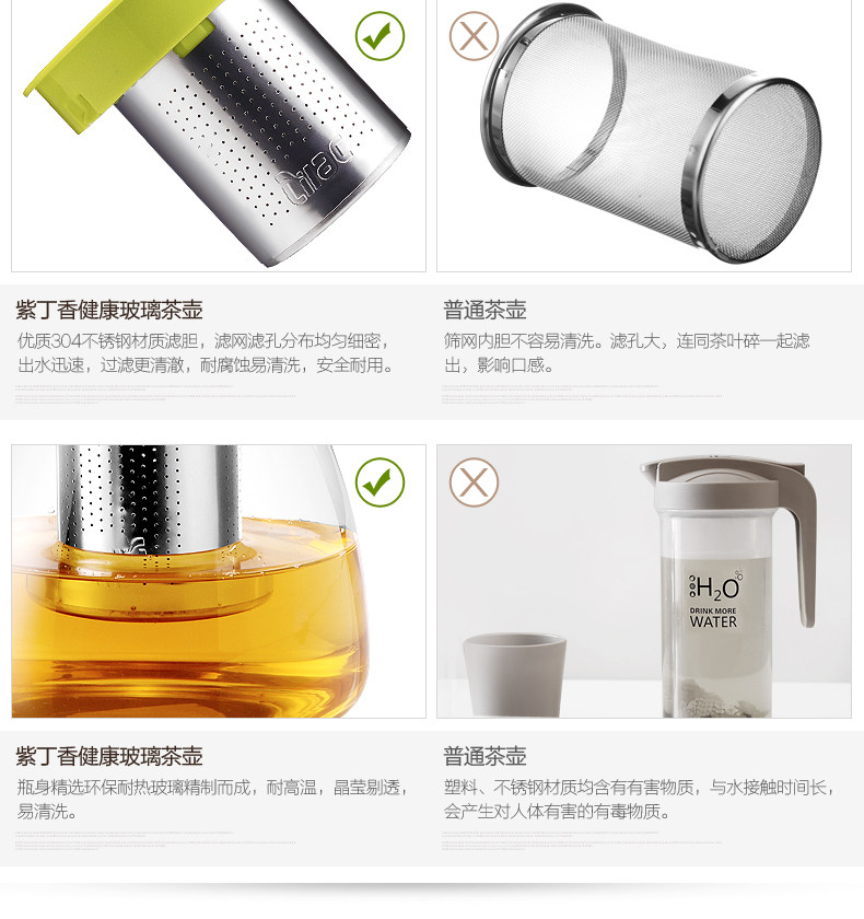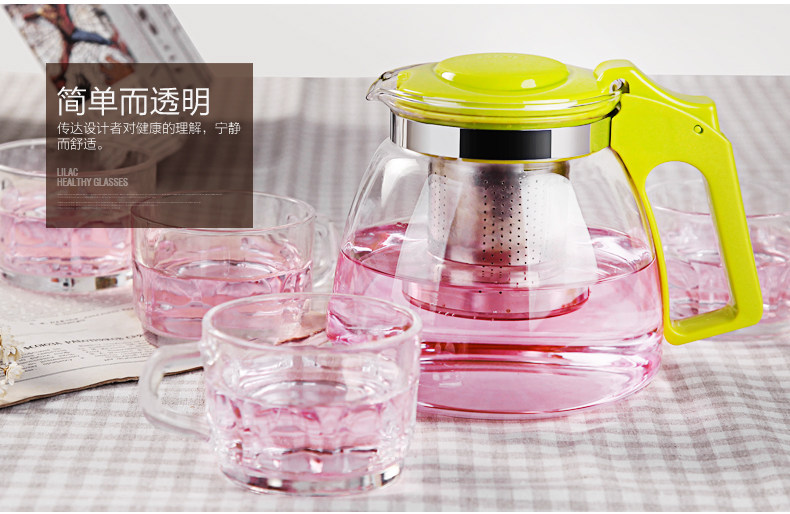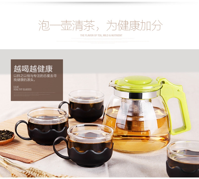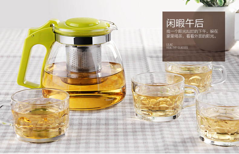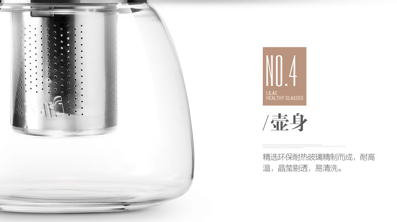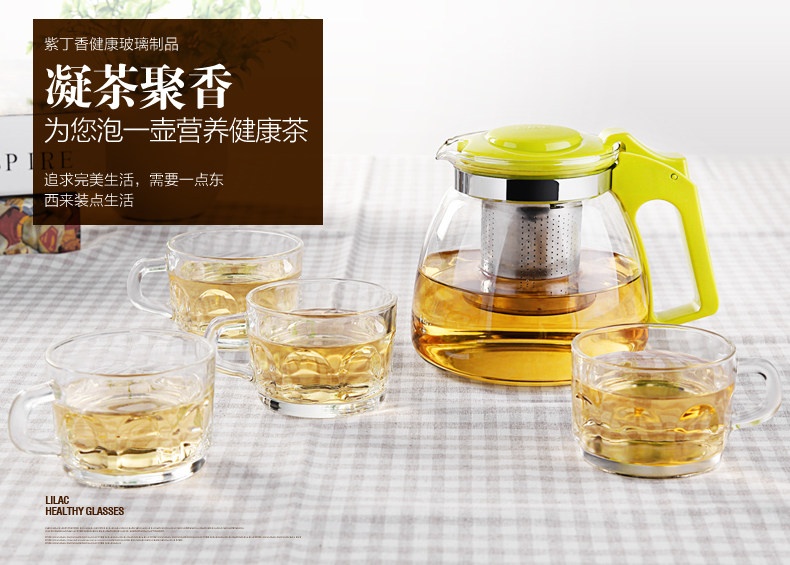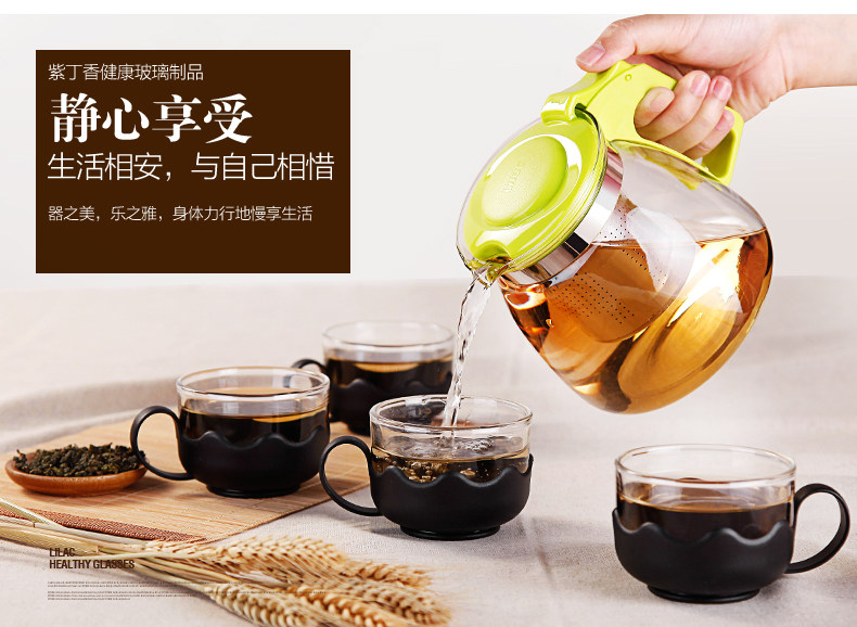 紫丁香 耐热玻璃茶壶茶具套装过滤花茶壶泡茶壶普洱茶900ml五件套