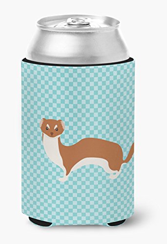 Caroline's Treasures BB8044CC Weasel Blue Check Decorative, Can Hugger, Multicolor