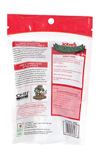 Jobe’s Organics Vegetable & Tomato Fertilizer Spikes, 2-7-4 Time Release Fertilizer for All Vegetables, Herbs and Tomato Plants, 50 Spikes per Package