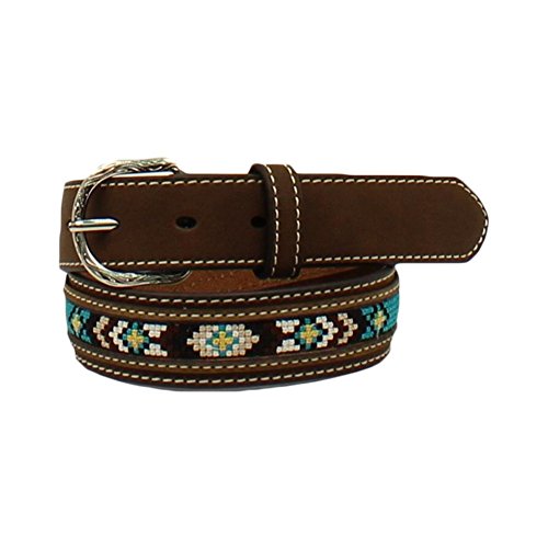 -. Title : Nocona Boy's Colorful Stitched Design Inset Belt, Brown, 24