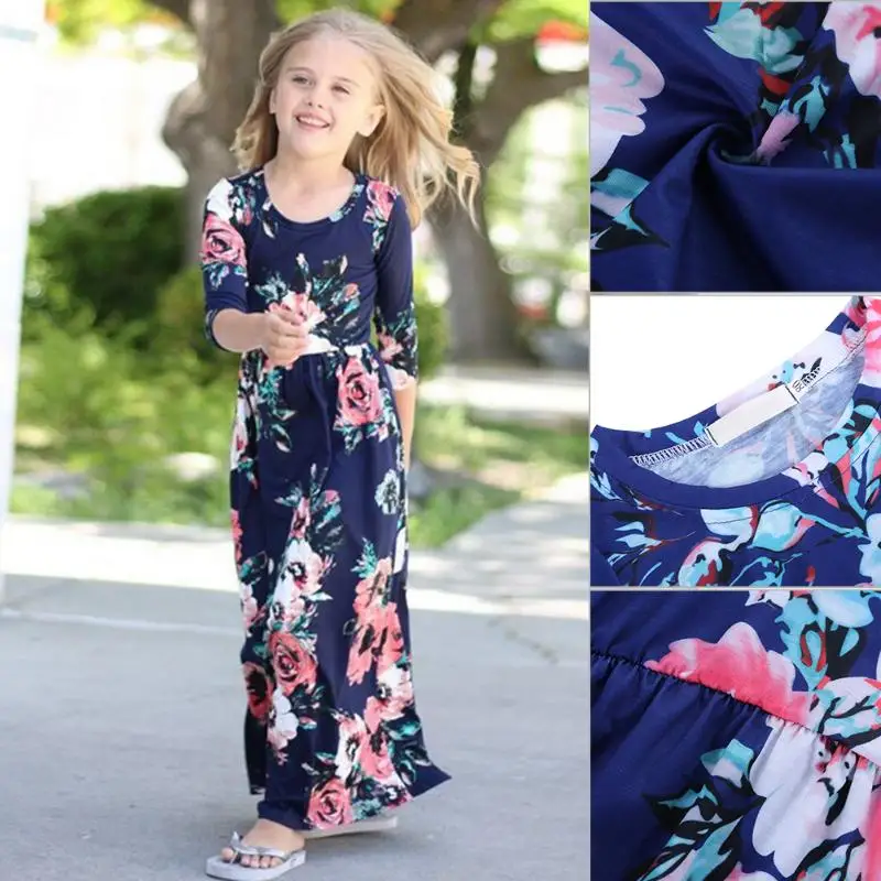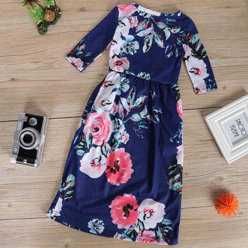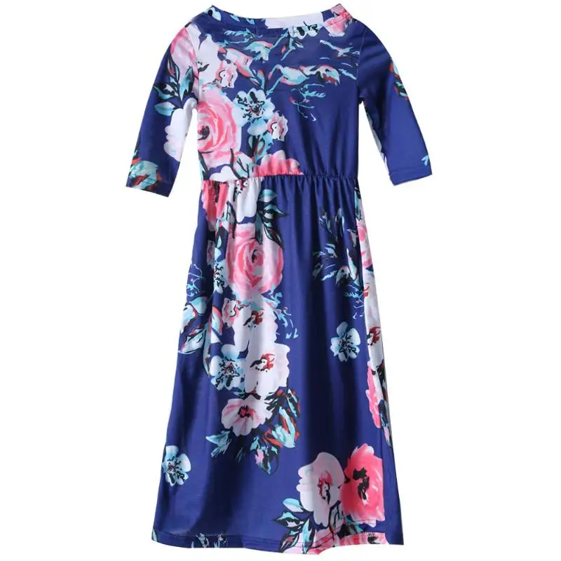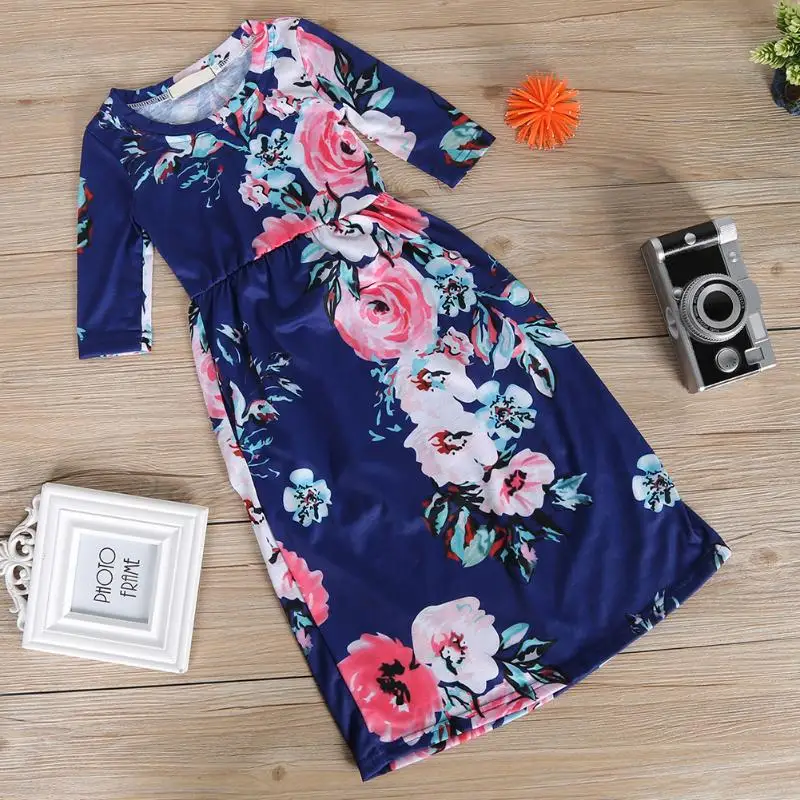 Loose Autumn European Girls Children Clothing O-neck Floral Dress