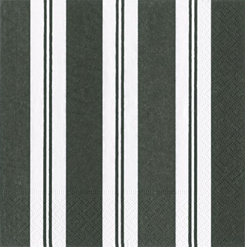 Entertaining with Caspari Awning Stripe Black and White Paper Dinner Napkins, Pack of 20