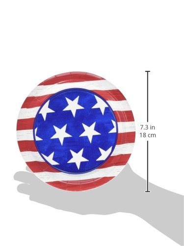 Product Description Classic patriotic service! Serve snacks and desserts with our Americana 7" Round Disposable Paper Plates. Perfect tableware for a 4th of July Celebration Event. 0