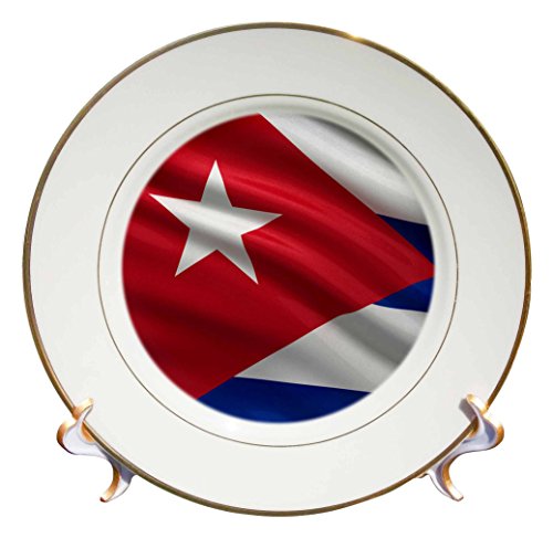 3dRose cp_178744_1 Flag Of Cuba Waving In The Wind Porcelain Plate, 8"