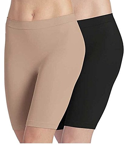 -. Title : JOCkey Women's Skimmies Slip Short Smooth Lightweight Mid-Length, 2 Pack, Black, Nude