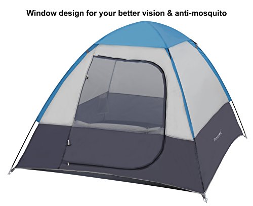 FINNKARE Portable Folding Tent is the best choice for providing you and your family friends a camping adventure. A bag for easy carrying, lightweight, easy set up and take down, FINNKARE tent features a private space for relax, weather protection and storing stuff. It can hold 2 people easily. D-style door, closeable window mesh design for great vision and cross ventilation. Seams are Double-stitched, lap-felled to provide a shingle effect against water and all threads, zippers and webbing are treated with superior water repellency applications. Duffle bag is included for storage.