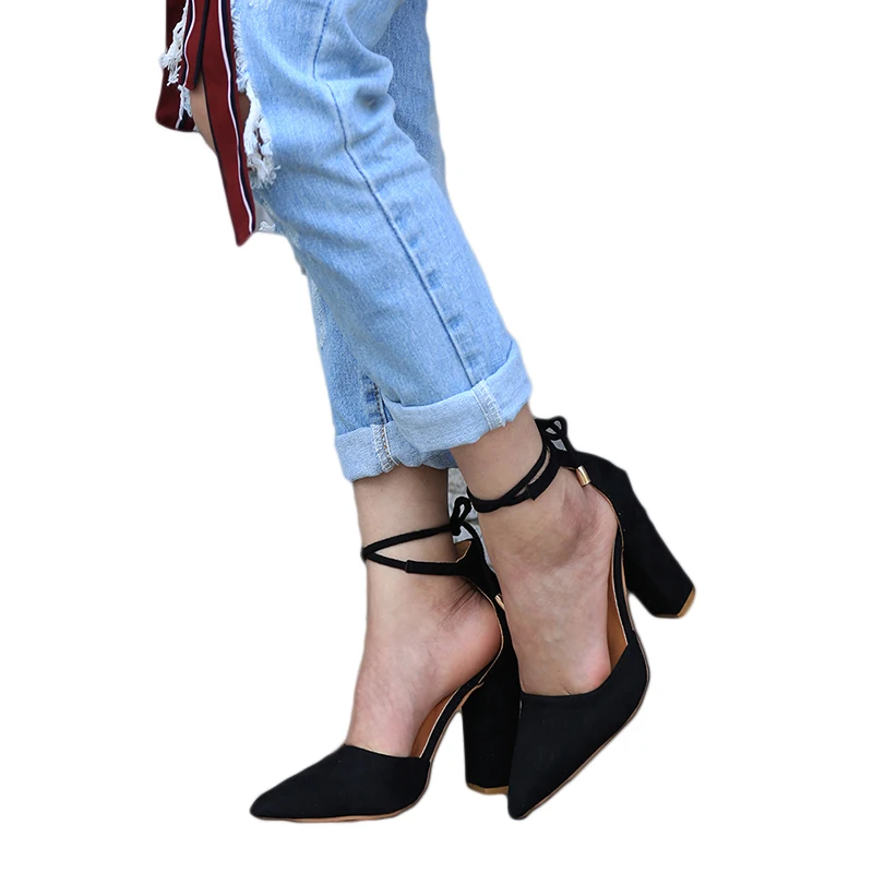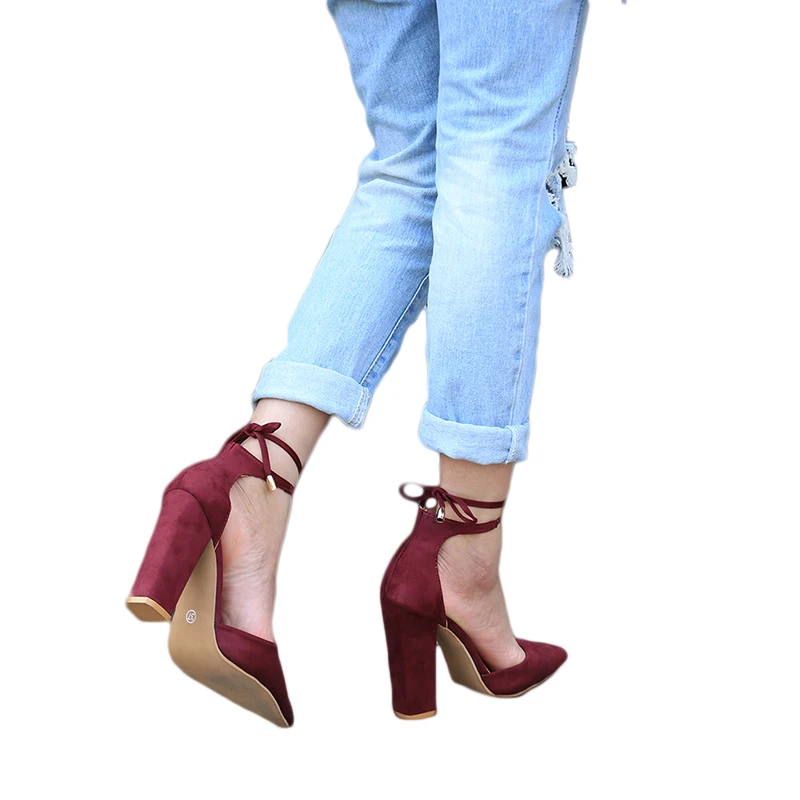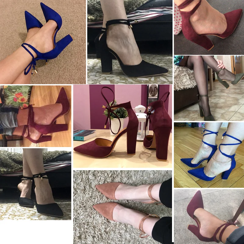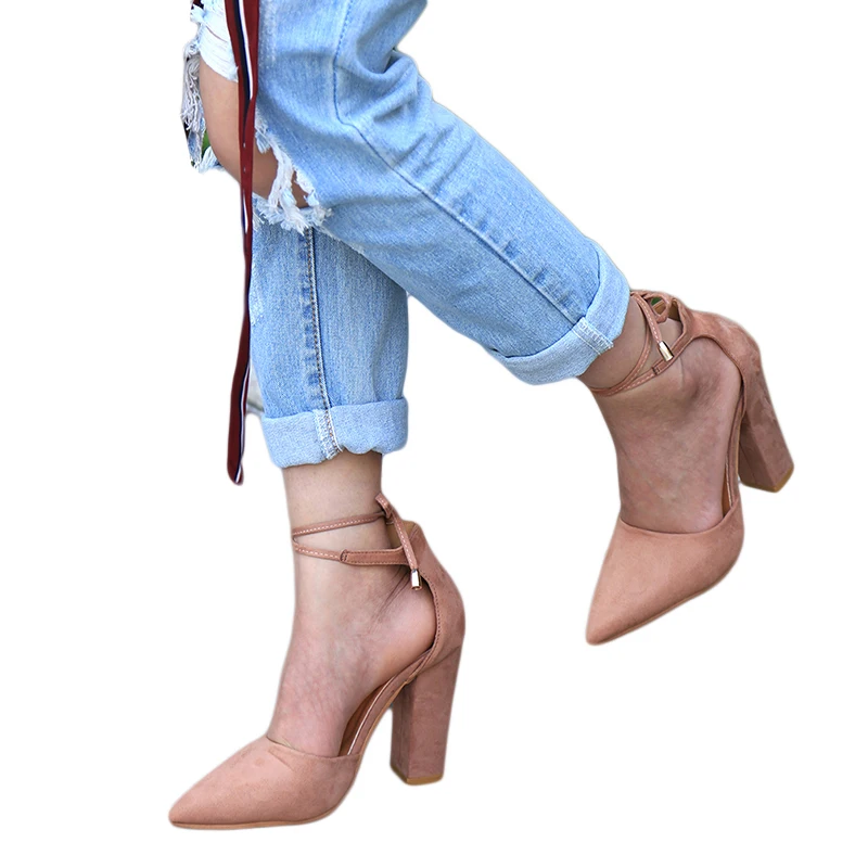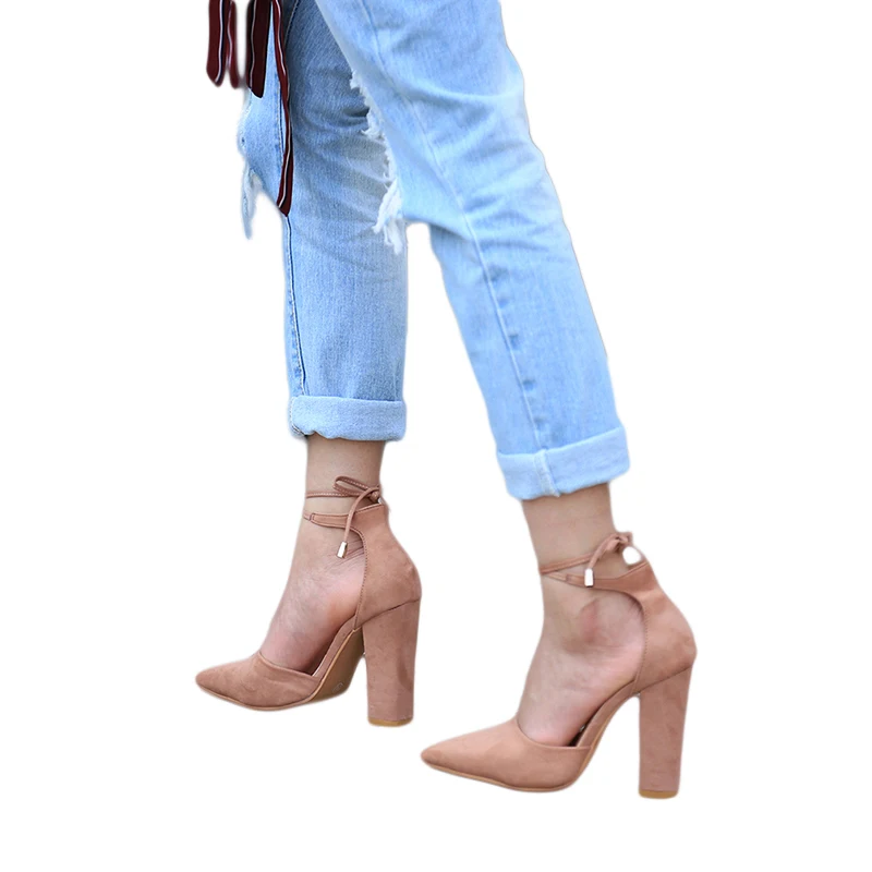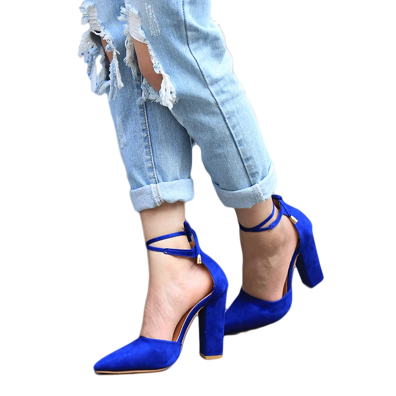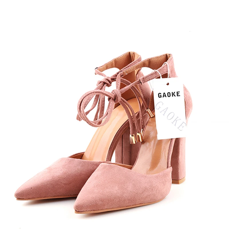 6 COLORs Pointed Strappy Pumps Sexy Retro High Thick Heels Shoes 2108 New Woman Shoes Female Lace Up Shoes ( Heel high: 10.5cm )