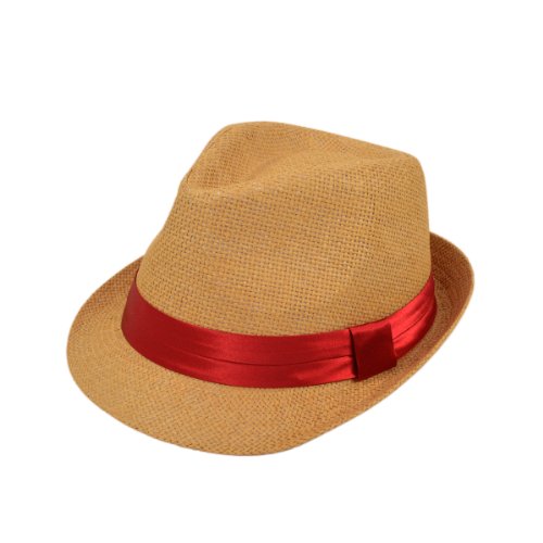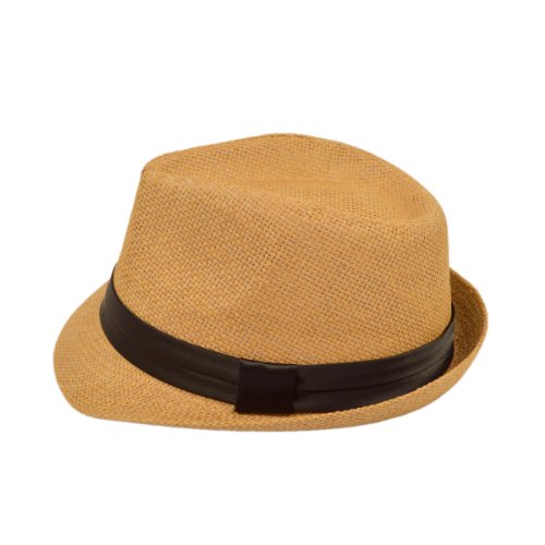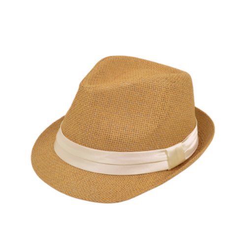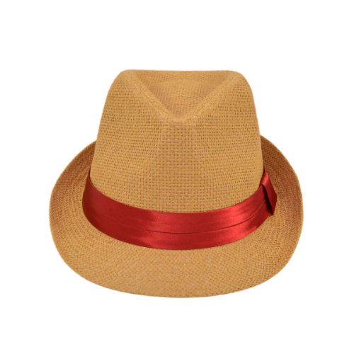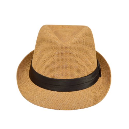 -. Binding : Apparel -. Brand : TrendsBlue -. ClothingSize : One Size -. Department : womens -. Feature : Brand new, made from paper straw / One size fits most / Premium quality, comfortable fit / Different colored band available / Brand: TrendsBlue® -. ProductGroup : Apparel -. ProductTypeName : HAT -. Size : One Size -. Title : Classic Tan Fedora Straw Hat with Ribbon Band - Diff Color Band Avail