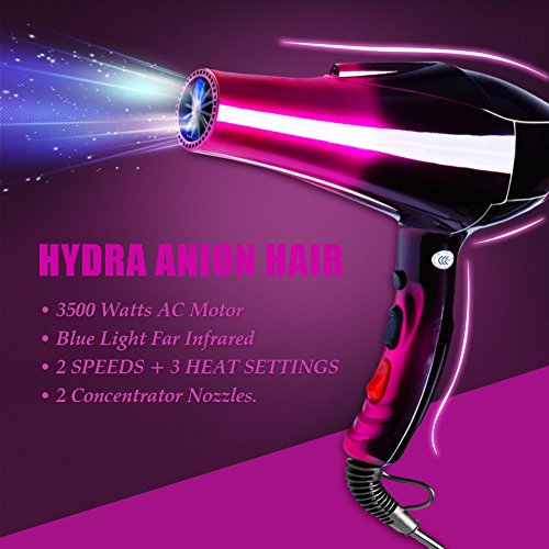 - Professional Hair dryer with 3500W AC motor for extra long life and fast drying, the powerful 3500w motor speeds air through your hair for faster drying and styling.