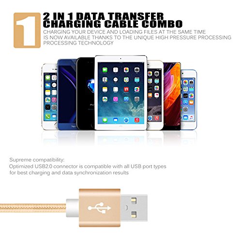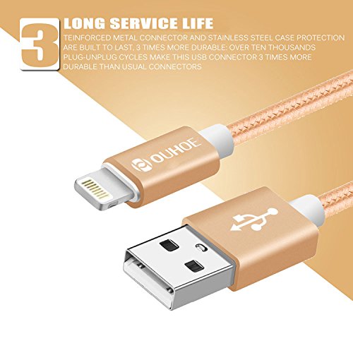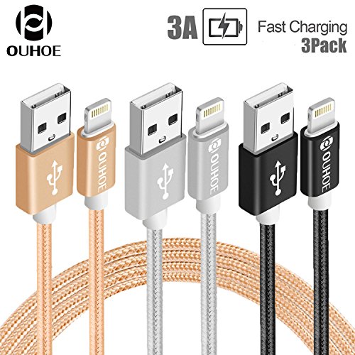 Lightening to USB Cable Nylon Braid 3 Pack for iPhone iPad Air Pro 1 m/3.3FT Gold/Grey/Black