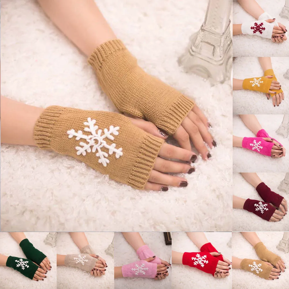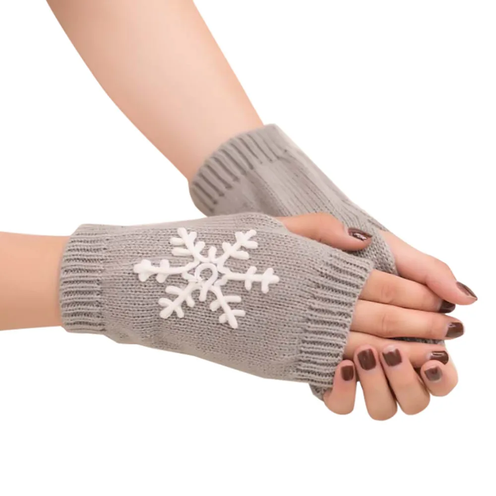 Model Number:Winter warm snowflakes knitted semi-finger gloves