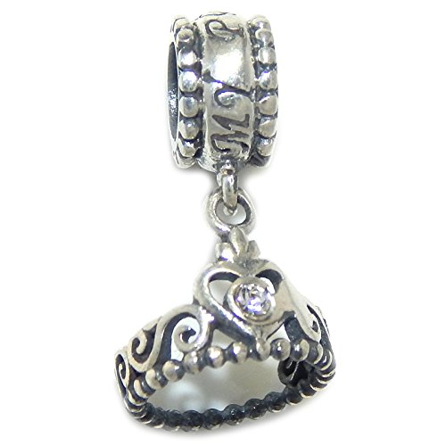 -. Title : Solid 925 Sterling Silver Dangling "Princess Tiara with Crystal" Charm Bead (Clear)