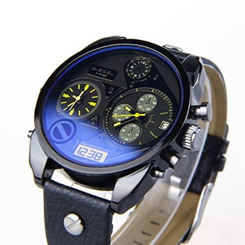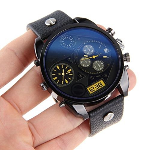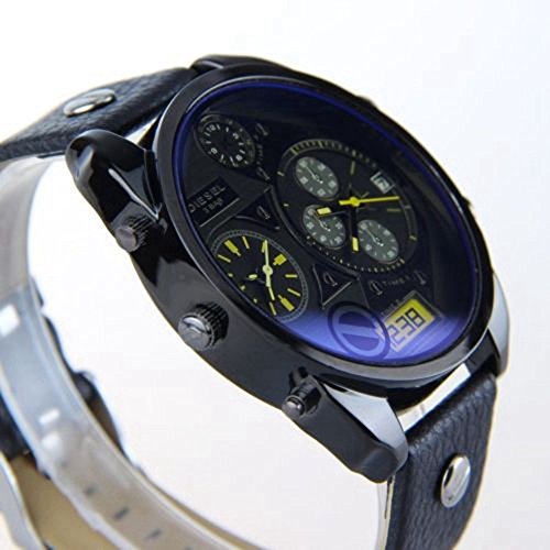 -. Title : Soleasy Luxury Cool Men's Boys Analog Sport Steel Case Quartz Date Leather Wrist Watch WTH8047